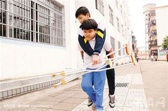 王小虎背着同桌去上课。计思佳 摄