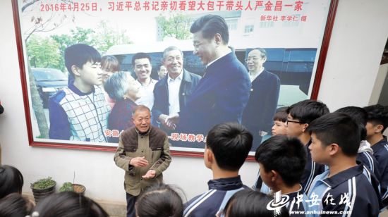 大包干带头人严金昌向学生讲述小岗的发展故事