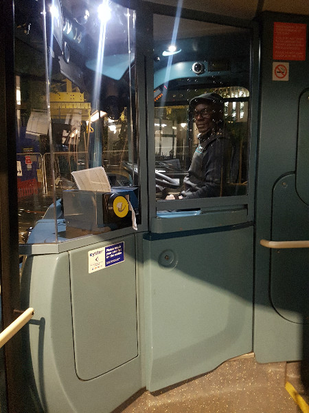 英国的公交车有多种样式,绝大部分的公交车有单独的封闭驾驶室,仅留出刷卡或找零的小窗口。一位公交司机向人民网英国记者表示,在伦敦某些区域的公交上不时会有暴力事件发生,甚至有乘客在公交总站等待司机下班后滋事报复。他认为隔离驾驶室是十分必要的。同时为了保证司机的安全,公交车上都安装有多个摄像头,可以拍摄到车上的乘客及司机的操作。司机的右手边有红色的紧急按钮,按下后可以发出巨大声响以起到震慑和警示作用,但不具备报警功能。驾驶室内装有无线电,可以随时与公交控制中心联系,其中两个按钮可以快速向总站告知车辆发生了小型或大型事故,车辆可以被快速定位。