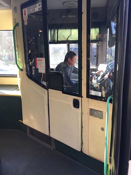在俄罗斯,无论是大型、小型公交或是有轨电车均为司机设有专门的驾驶区域。在有轨电车和大型公交车上,司机的驾驶舱为全封闭状,上部为有机玻璃,下部为金属隔板组成,可以完全免受他人干扰。小型公交车的驾驶舱呈半封闭状,即使在拥挤的情况下也可以保证司机距离乘客约一臂距离。此外,公交车上防火、急救、监控设备一应俱全。