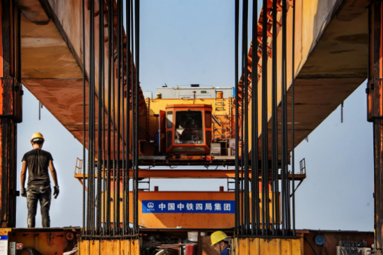 《商合杭高铁柘皋河特大桥架桥现场建设》组照三